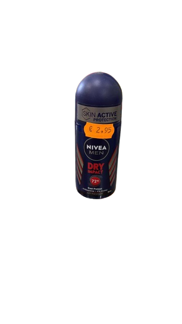 Desodorante Nivea Men Dry Impact con protección de 72 horas. Ideal para pieles sensibles y máxima frescura.